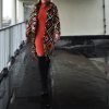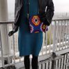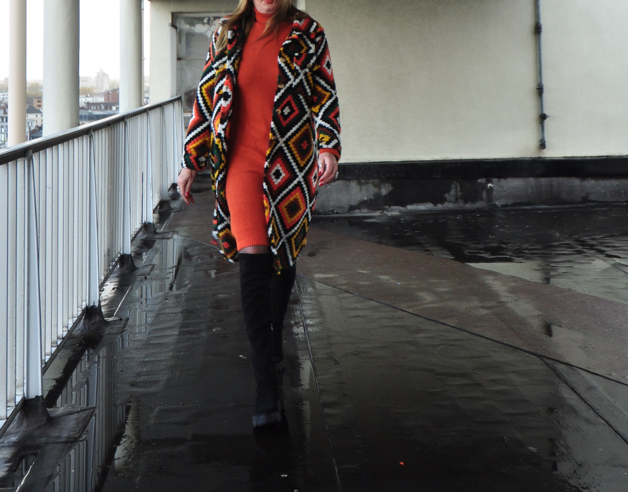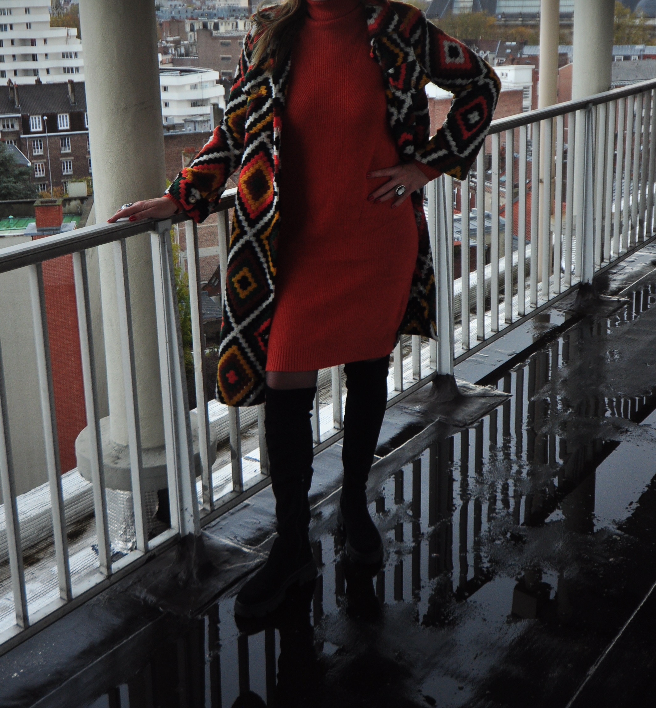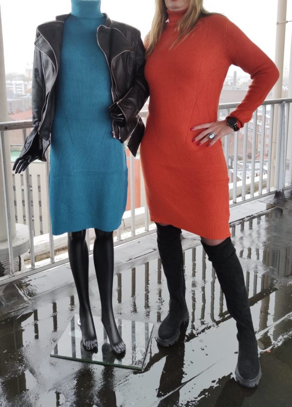 Robe col roulé, orange et bleu
