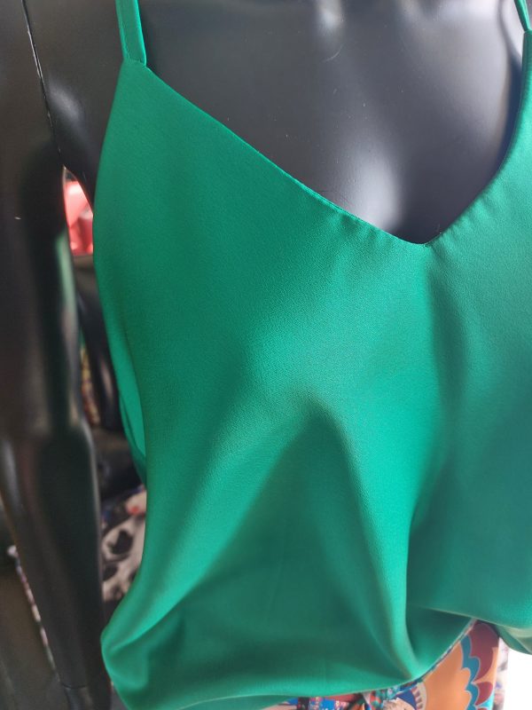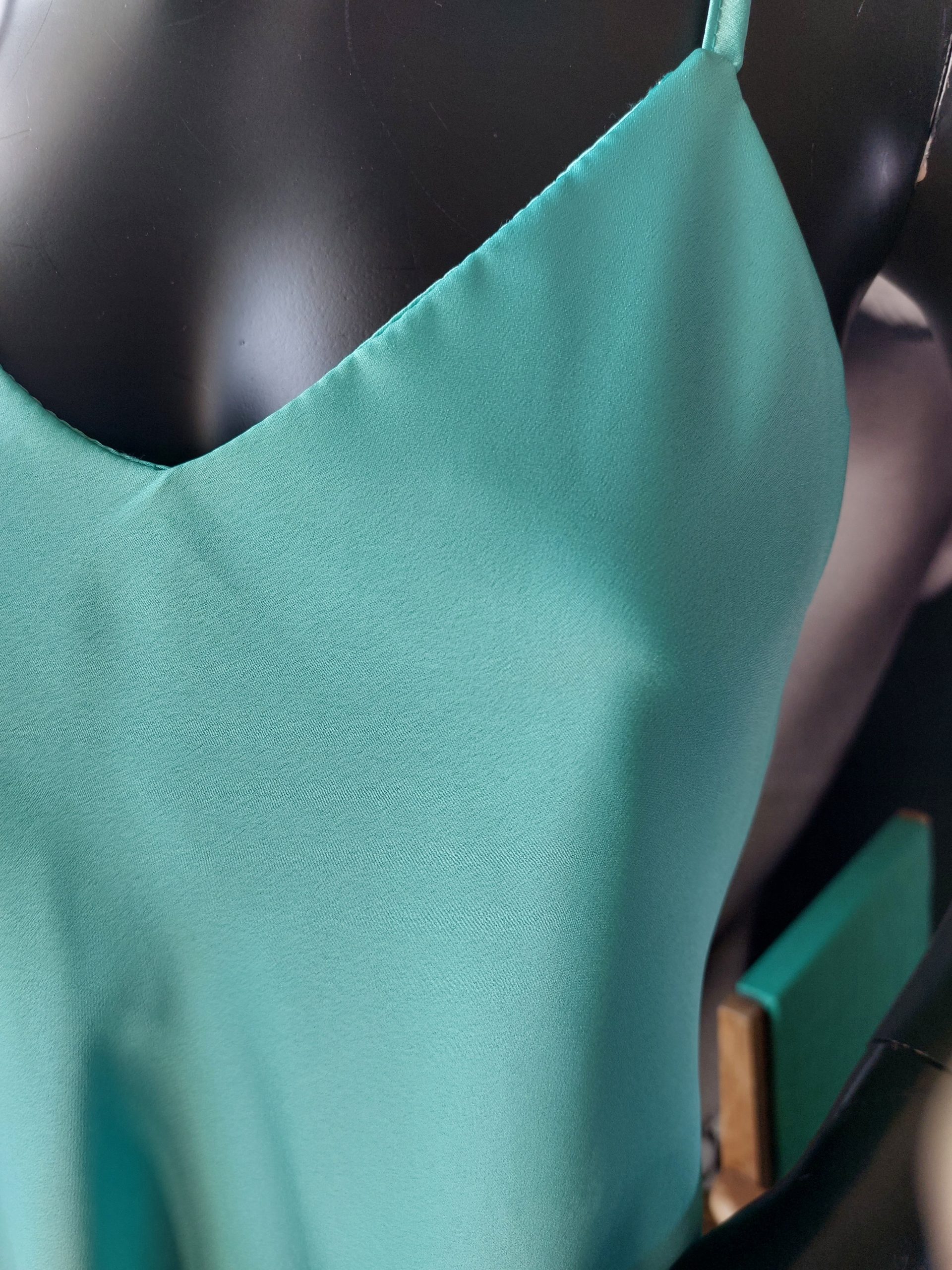 joli top satiné, taille unique, existe en vert, bleu, rose fushia, beige