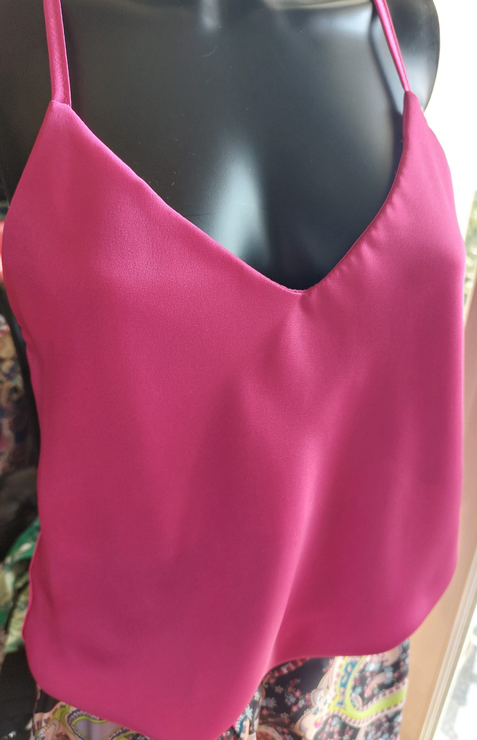 Top satiné, taille unique, existe en bleu, beige, rose fushia et vert